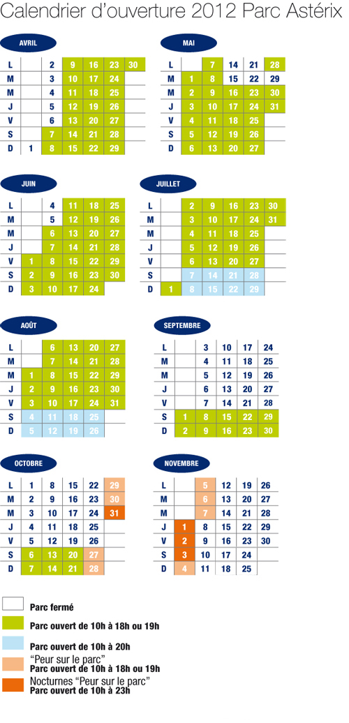 Calendrier d'ouverture du Parc Astérix :
